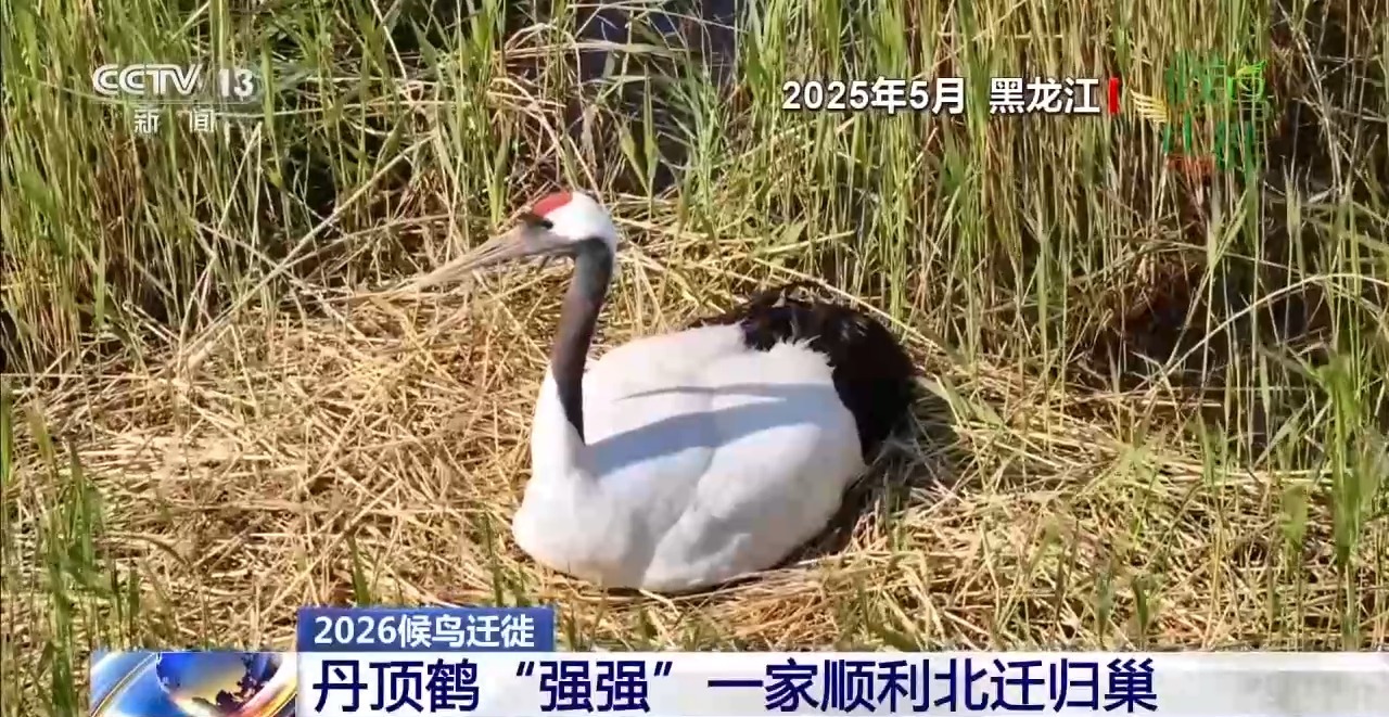 2024年11月底,“强强”迁徙至辽宁盘锦后,信号突然中断,直到2025年3月,中断许久的信号恢复了,定位显示“强强”已回到林甸县。令人惊喜的是,“强强”还找到了自己的伴侣,并于2025年5月孵化出两只幼鹤。同年10月15日,工作人员再次对“强强”夫妇进行观察时发现,它们身边仅剩一只幼鹤。今年迁徙季,“强强”夫妇顺利北迁归巢。