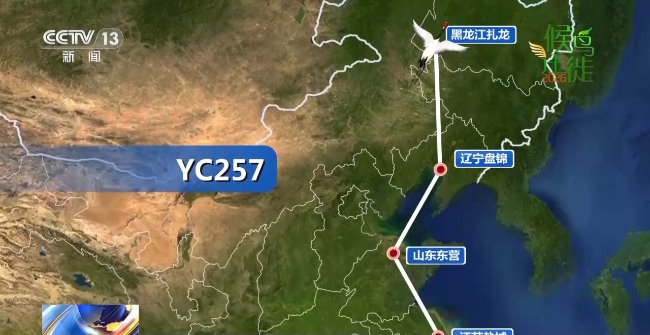 江苏盐城湿地珍禽国家级自然保护区社会事业管理科副科长陈国远介绍,丹顶鹤YC257于2月18日开始向北迁徙,飞行50公里后返回保护区。第二天它再次向北迁徙,连续飞行十几个小时,于凌晨1点抵达山东东营。在东营停留两天后,丹顶鹤继续北飞,在辽宁盘锦停留了20天左右,最终抵达扎龙保护区。