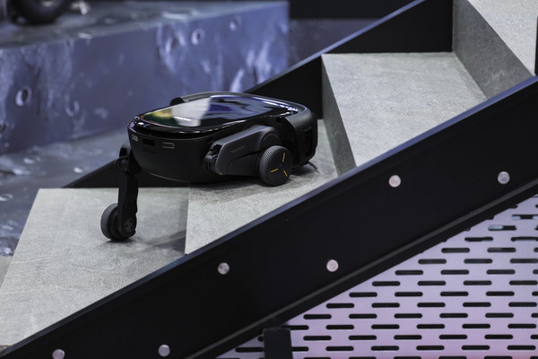 最令人驻足惊叹的,无疑是全球首款能扫楼梯的轮足扫地机器人——石头G-Rover。这款产品的出现,彻底打破了“扫地机=平面清洁”的刻板印象。它采用双轮腿架构,每个轮腿都能独立完成伸展、提升与升降。在现场的动态演示中,G-Rover在面对楼梯这种传统扫地机的“绝对禁区”时,通过动态平衡算法与复杂地形感知系统,像人类一样抬脚、跨越、调整机身水平,稳稳当当地完成了爬楼清洁。这不仅是一次形态上的创新,更是对家庭清洁维度的重新定义——从此,扫地机的战场从地面延伸至了整个垂直空间。